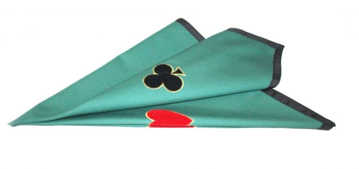 Onze mooie bridgekleden zijn voorzien van de vier kaartsymbolen. De kleden zijn wasbaar op 30 graden met een fijnwasmiddel. De kaartkleden mogen niet in de droger, maar ze zijn wel strijkbaar.