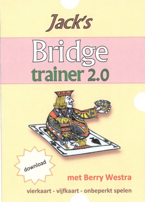 - Jack's Bridgetrainer 2.0 biedt volledige ondersteuning voor de beide lesmethodes van Berry Westra. Met het verschijnen van Berry Westra's moderne vijfkaart hoog methode (Flits) ontstond de behoefte om ook dat systeem goed in de vingers te krijgen. In de nieuwste versie Jack's Bridgetrainer 2.0 kun je zowel vierkaart laag (Berry's oudere lesmethode) als ook zijn moderne vijfkaart hoog methode oefenen. Met Jack's Bridgetrainer 2.0 heb je dus ook de beschikking over de moderne systeemkaarten van Berry Westra's Bridge in een Flits methode.