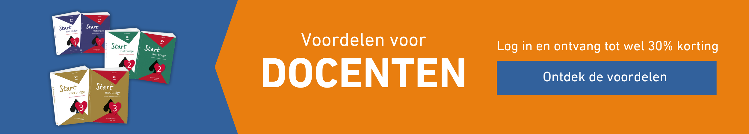 Ben jij een docent en wil jij op de beste manier je leden kennis toebrengen? Neem dan een kijkje in de onderstaande categorieën waar je als docent het perfecte materiaal op het gebied van Starten met bridge, Bridge Bond Specials Themareeks en speelmaterialen kan vinden. Zo kun je bijvoorbeeld de Start met bridge serie, alle Bridge Bond Specials en alle speelmaterialen vinden bij ons, waarmee jij op de beste manier je leden kennis laat maken met bridge en hun speelvaardigheden aan de bridgetafel verbetert.
